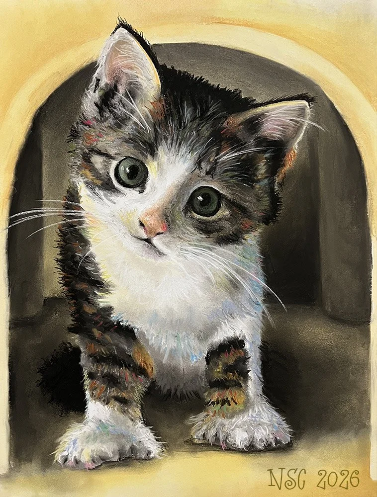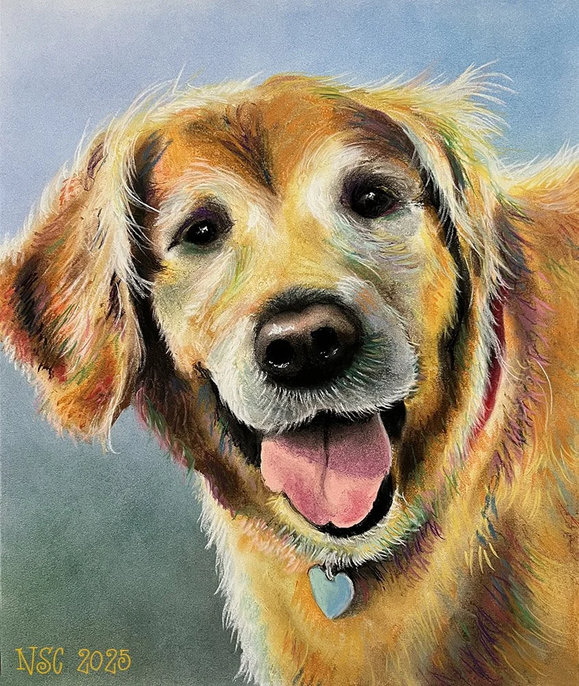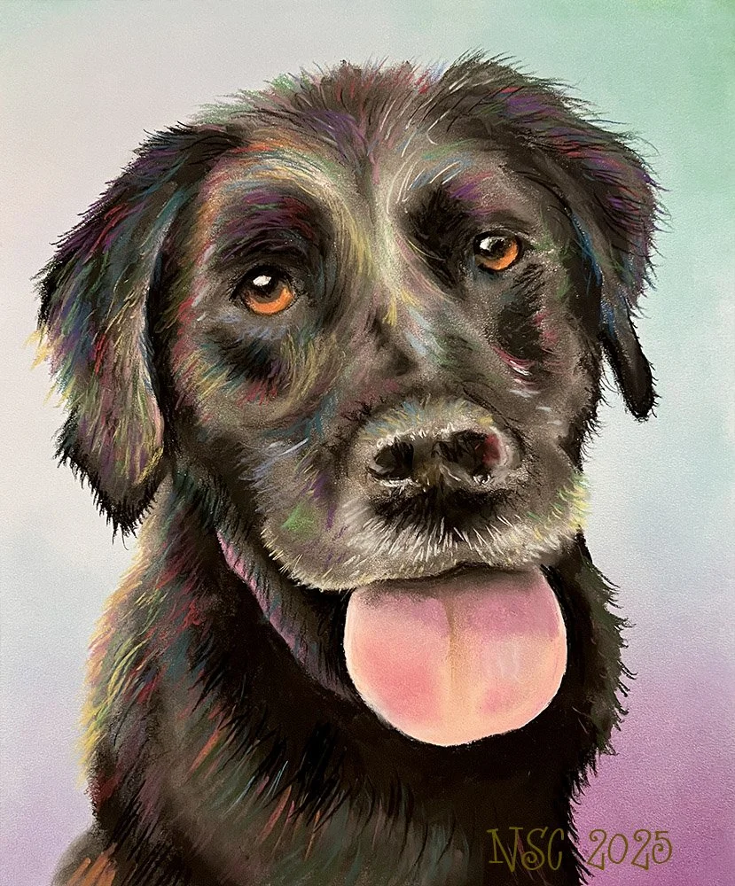 My custom animal portraits are created using vibrant, colorful chalk pastels, and my aim is to capture each animal’s personality, curiosity, and quirkiness.